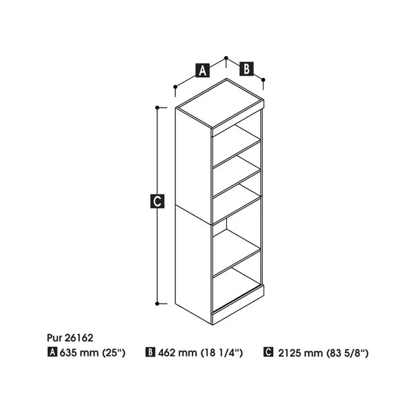 • Dimensions (L x W x H): 63.5 cm x 46.2 cm x 212.6 cm (25 in. x 18.2 in. x 83.7 in.)