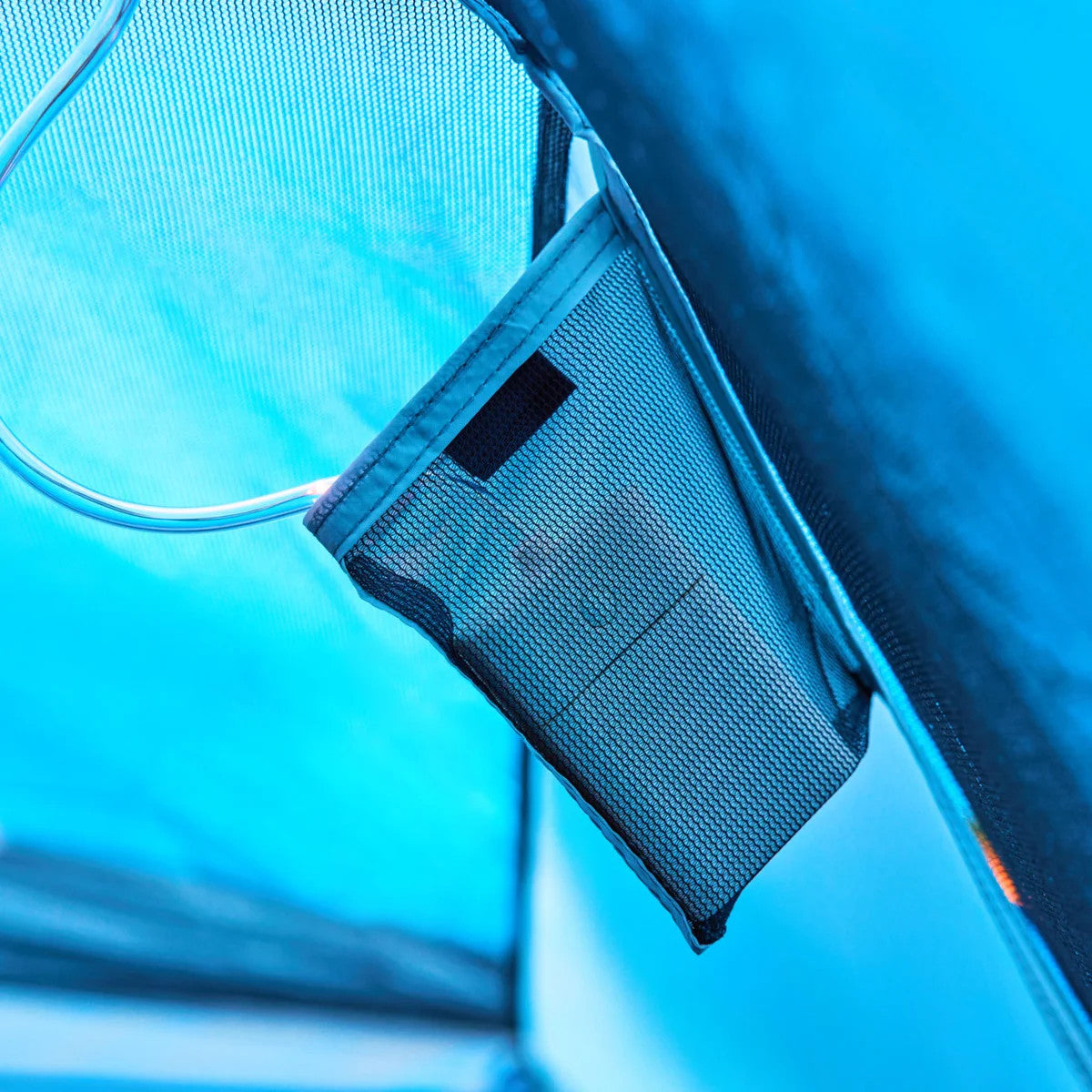 The Coleman Skydome XL 8-person camping tent with LED lighting features a built-in LED system that delivers overhead lighting perfect for lounging inside when the sun goes down. The fast pitch system allows for easy assembly, with pre-attached, colour-coded poles and snag-free Insta-Clip suspension to make tent setup quick. Tested to withstand up to 56 km/h (35 mph) winds, the WeatherTec system utilizes patented corner welds and protected seams to keep water out.