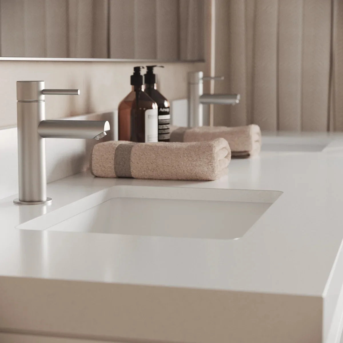 • 5 cm (1.9 in.) thick engineered stone top with 10.2 cm (4 in.) high backsplash