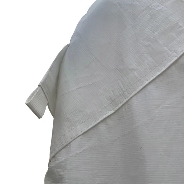 • White fitted cover with leg skirts and end gables