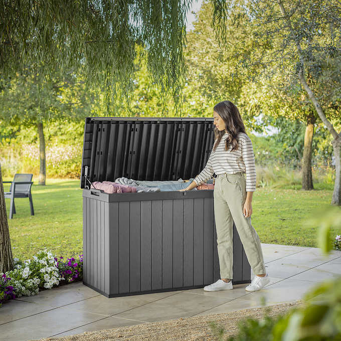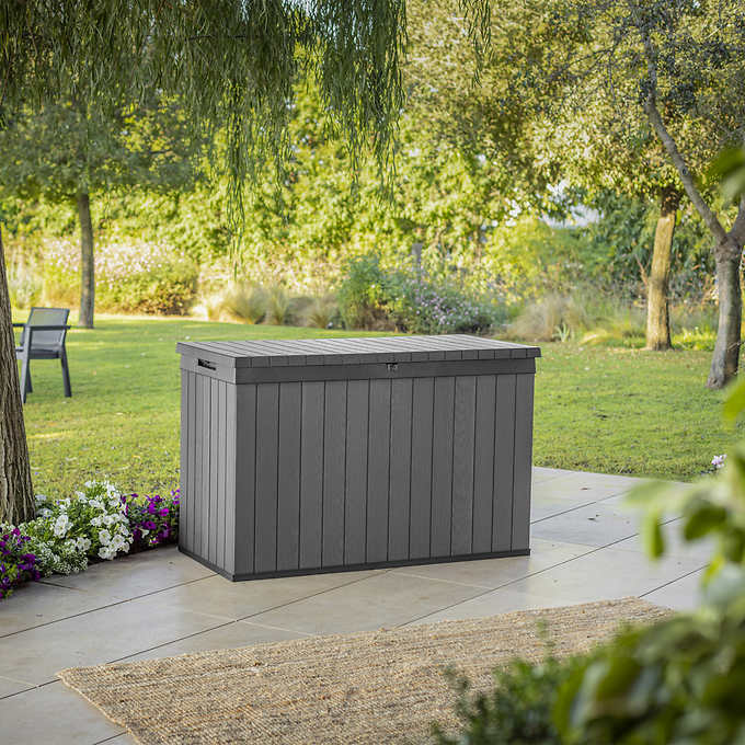 The Darwin features soft open and close features, so if little fingers will be getting things in and out of the box, they’ll be much less likely to get pinched. This deck box is also weather-resistant, but it has a classic wood-like look and feels.