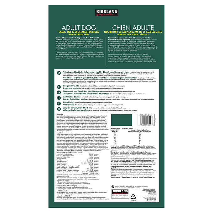 • Kirkland Signature Lamb, Rice & Vegetables Adult Dog Food, 18.14 kg (40 lb.)
