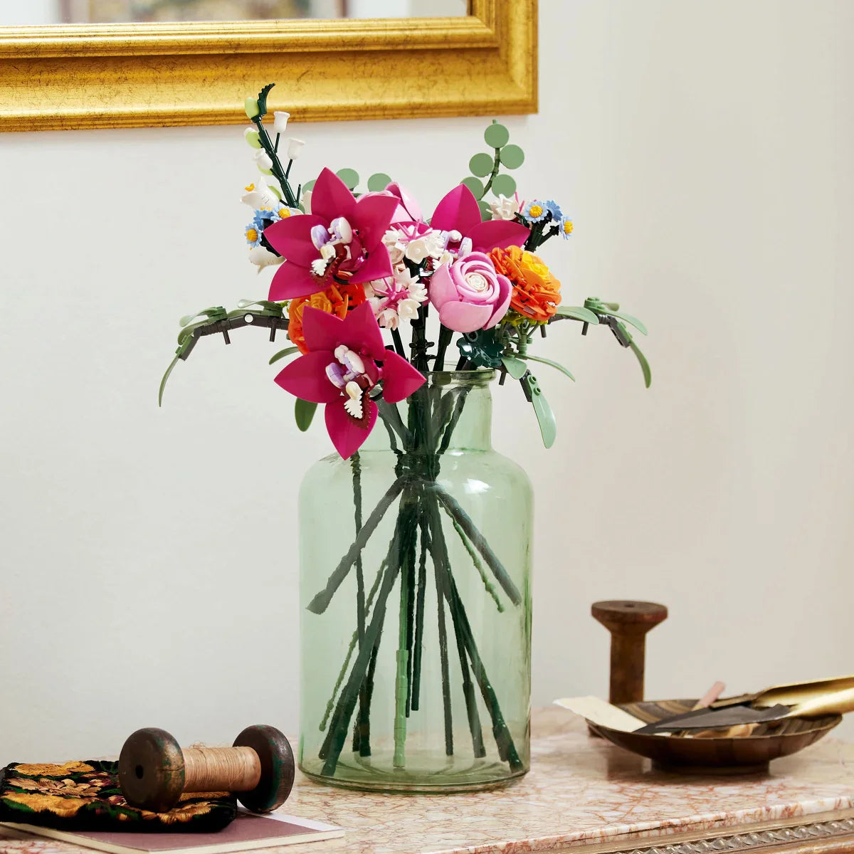 • 15 buildable flower stems, including daisies, cornflowers, eucalyptus, elderflowers, roses, ranunculus, cymbidium orchids, a campanula and a waterlily dahlia