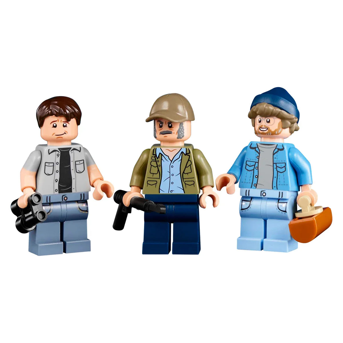 • 3 LEGO minifigures of Jaws movie characters – Chief Martin Brody, Matt Hooper and Sam Quint, with accessory elements including a revolver, compass, fishing rod, harpoon, spear and camera