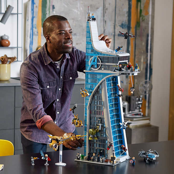Recreate the most iconic building in the Avengers Universe with the LEGO Marvel Avengers Tower (76269). This monumental build-and-display project for Marvel fans is packed with memorable scenes and classic characters.  One side of the building and the roof lift off to enable allow easy access to the interior, where numerous details and accessories reward fans with evocative movie references. A Leviathan, Quinjet and 2 Chitauri chariots stand by ready for battle.