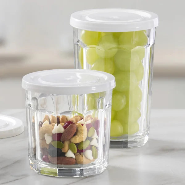 Libbey`s Atria glassware let`s you prep and store food for your busy life. Each glass comes with a lid for easy storage and transport. Take your lunch or a snack in them. Take a shake to go. Libbey glassware is food safe and dishwasher safe.