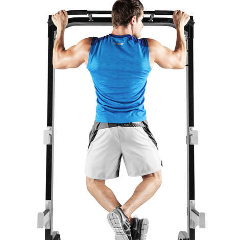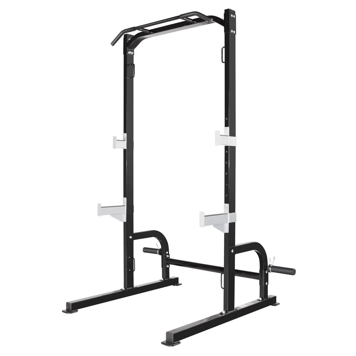 A sturdy foundation of this Marcy half cage, perfect for your home gym. A walk-in design with adjustable safety and bar catches; including a multi-grip pull-up bar and anchoring points allow you to optimize your strength training. The 2 plate posts make it easy to organize your free weight collections. The half cage accommodates both 1.82 m and 2.13 m (6 ft. and 7 ft.) Olympic bars (sold separately). Sturdy steel construction offers years of rugged performance.