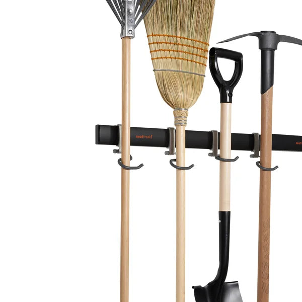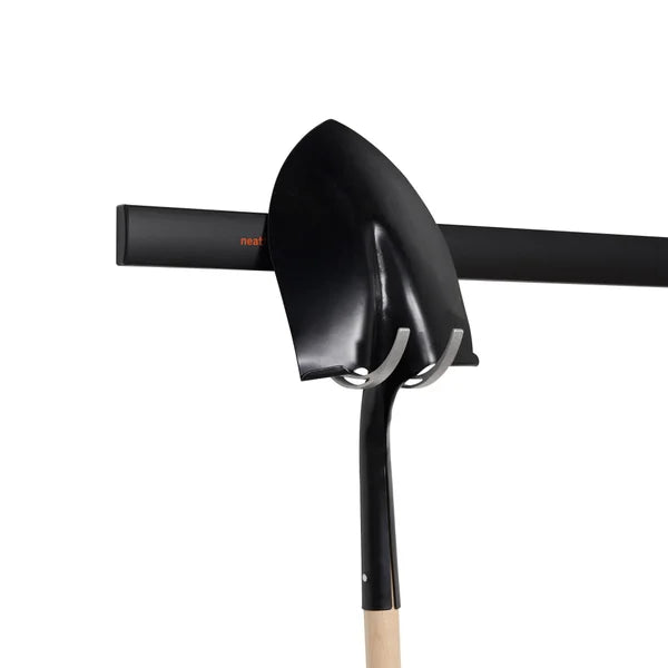 •  8 ft. of heavy-duty steel tracks that can be wall mounted to build an efficient storage system while remaining completely re-configurable with removable hooks.