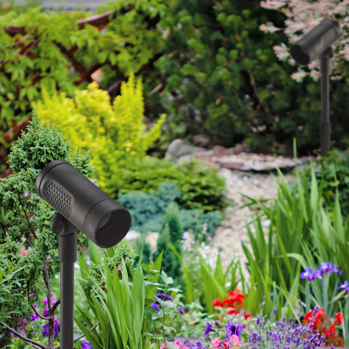 • All-weather durability / Die-cast metal fixture and ground stake