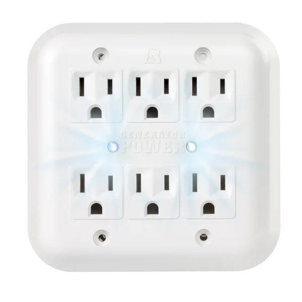 • 6-Outlet (5-15R) Pre-Wired Indoor Generator Power Panel (resembles typical 6-oulet receptacle) with wide faceplate design and outlets positioned to accommodate plugs safely