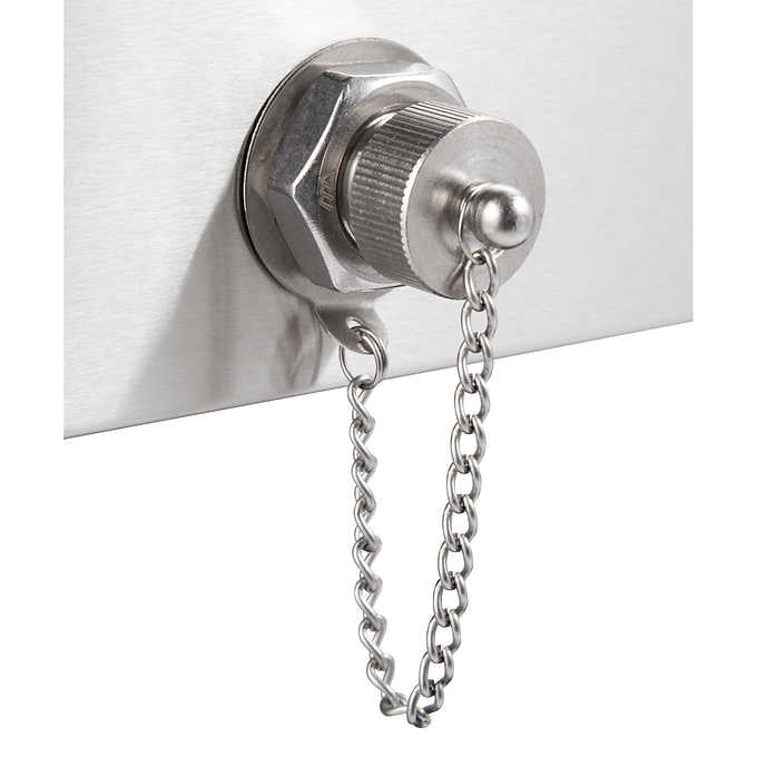 Entertain in style with an 75 L (80 qt.)/96 can capacity cooler. This sleek stainless-steel cooler/ice cart is especially convenient with its raised design and wheels, as well as with the bottle opener and cap catcher. Also included is a cooler cover which is both water and UV resistant. Perfect for indoor or outdoor use, you will never have to worry about serving warm drinks again.